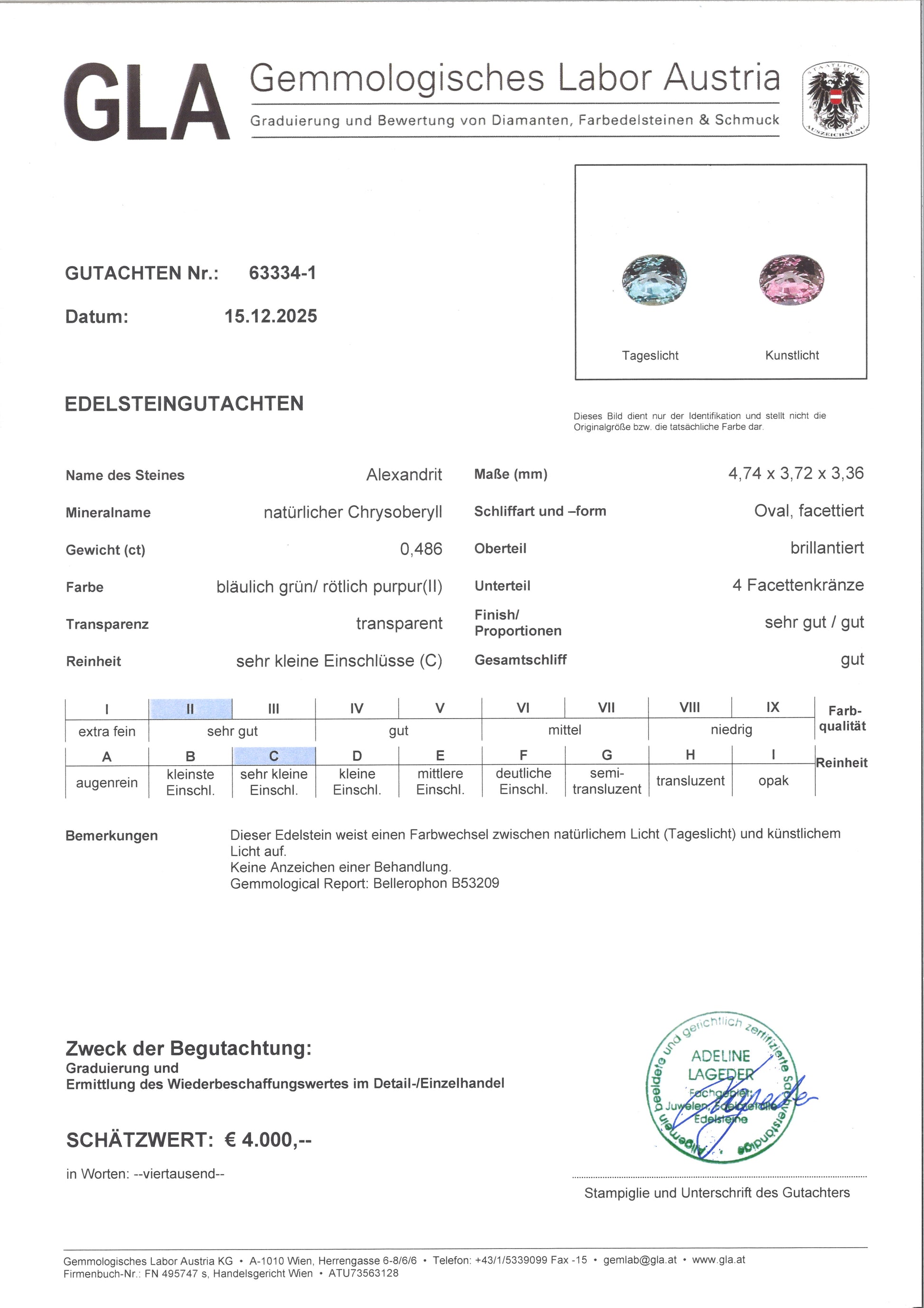von unabhängigen Gemologen geprüft