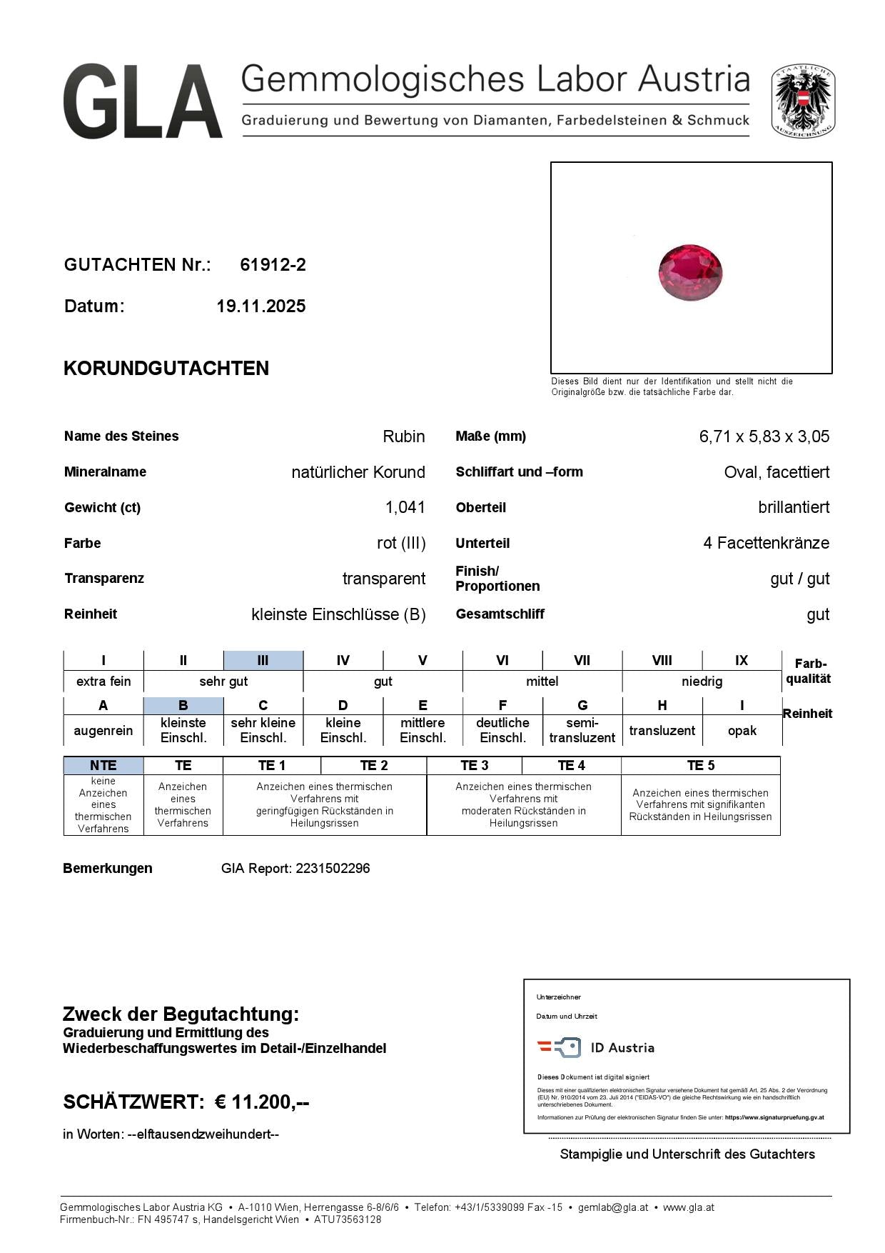 von unabhängigen Gemologen geprüft